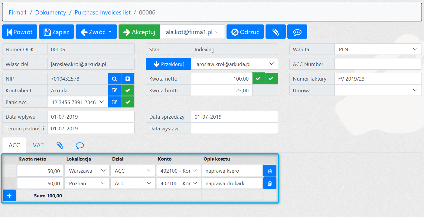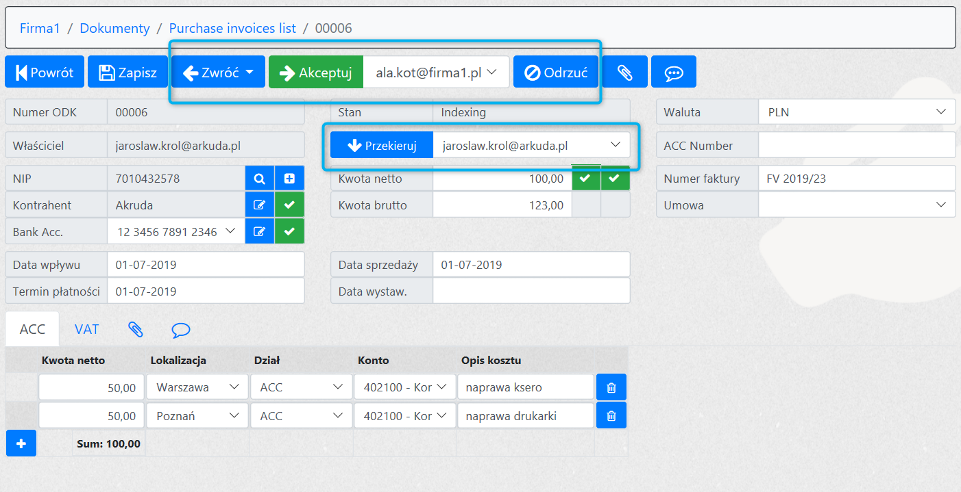 Dzięki naszym narzędziom do elektronicznego obiegu dokumentów, procesy alokacji i akceptacji faktur są efektywne. Zespoły finansowe mają większa kontrolę nad wydatkami, terminowością płatności do kontrahentów i dostarczaniem rzetelnych danych do celów raportowania.