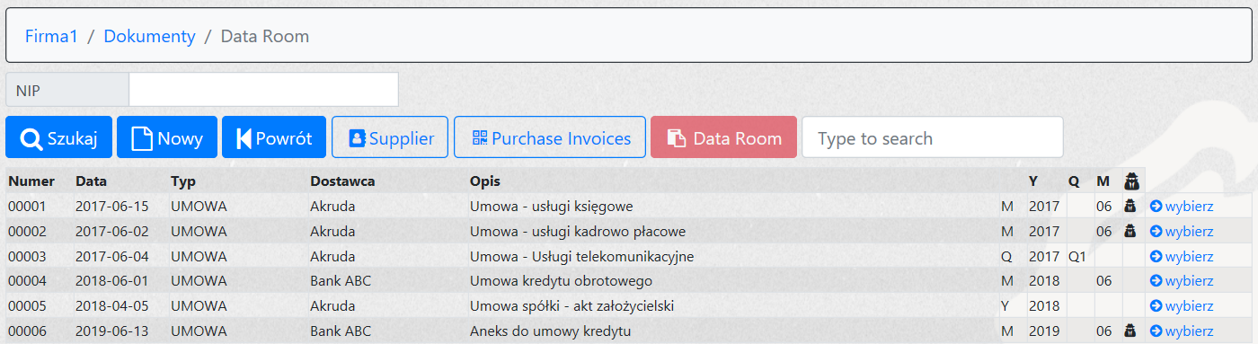 • Wiele opcji wyszukiwania (typ, kontrahent, okres, tagi etc…)